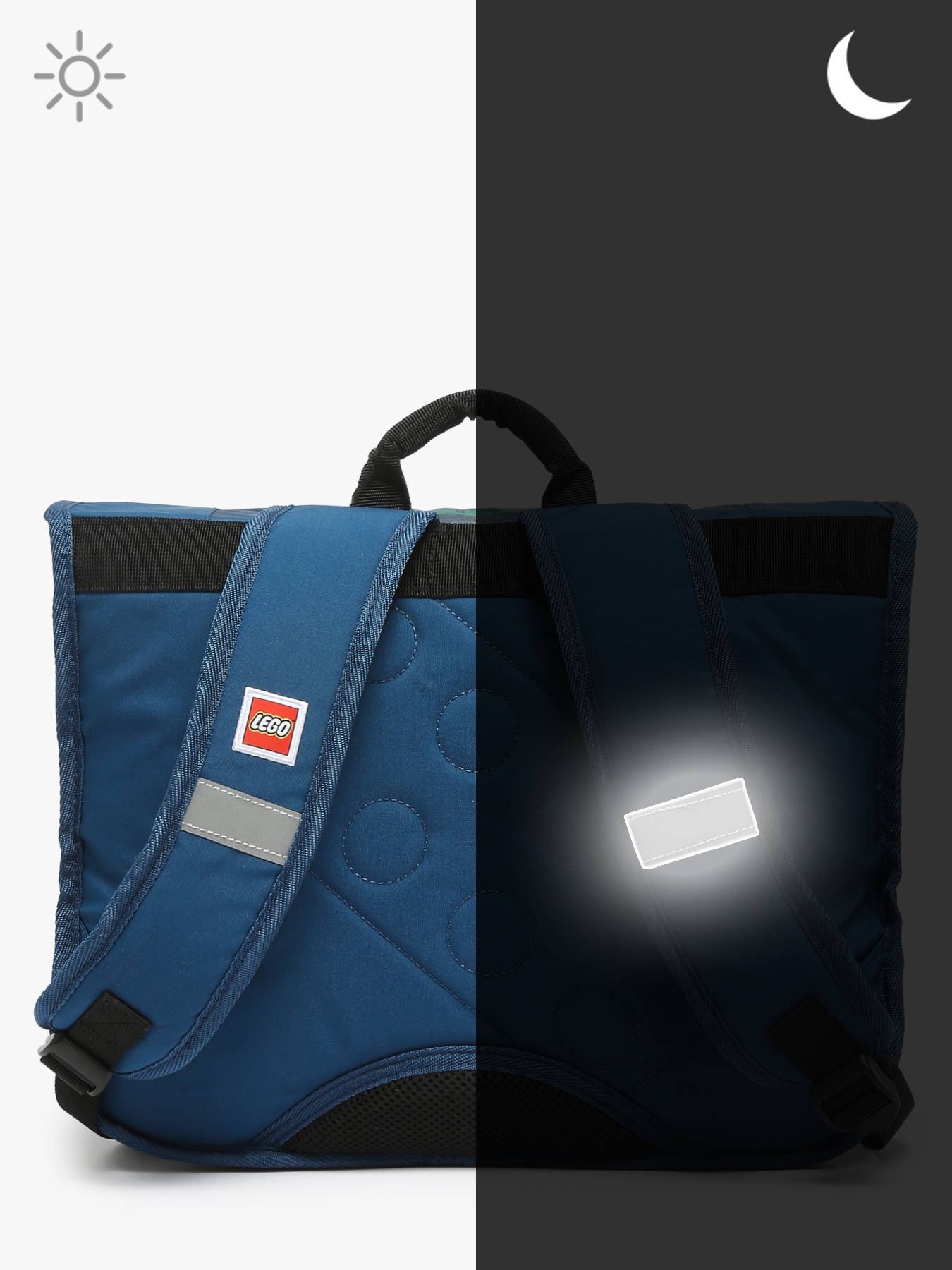 Boekentas 2 compartimenten van de lijn Ninjago into the unknown van Lego, om ofwel in de hand ofwel op de rug te dragen. Ideaal om A4-formaten en andere mee te nemen.