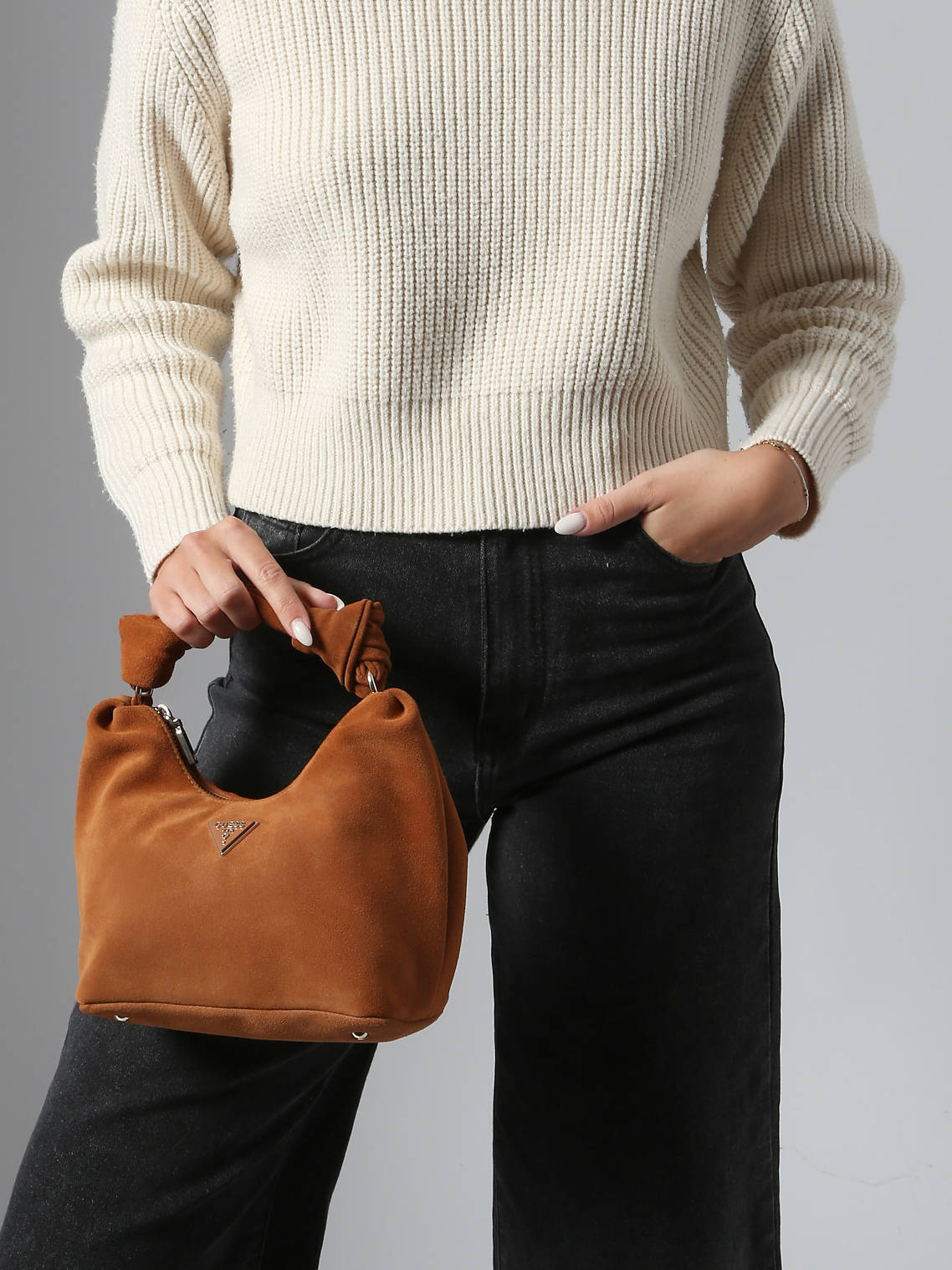 De Isotta-cross body tas van het merk GUESS overtuigt door zijn elegantie en de rijke uitstraling van het rundleer met suède-effect. De handtasjevorm geeft hem een verfijnde uitstraling, aangevuld met een ritssluiting die uw persoonlijke spullen veilig bewaart. Veelzijdig, kan hij met de hand worden gedragen dankzij het handvat van 13 cm of over de schouder met de afneembare schouderriem. Het interieur, zowel praktisch als doordacht, bevat een eenvoudig vak voor uw essentiële spullen en een ritsvak voor voorwerpen die veilig opgeborgen moeten worden. Chic en functioneel, is de ISOTTA-tas een ideale metgezel voor elke gelegenheid.