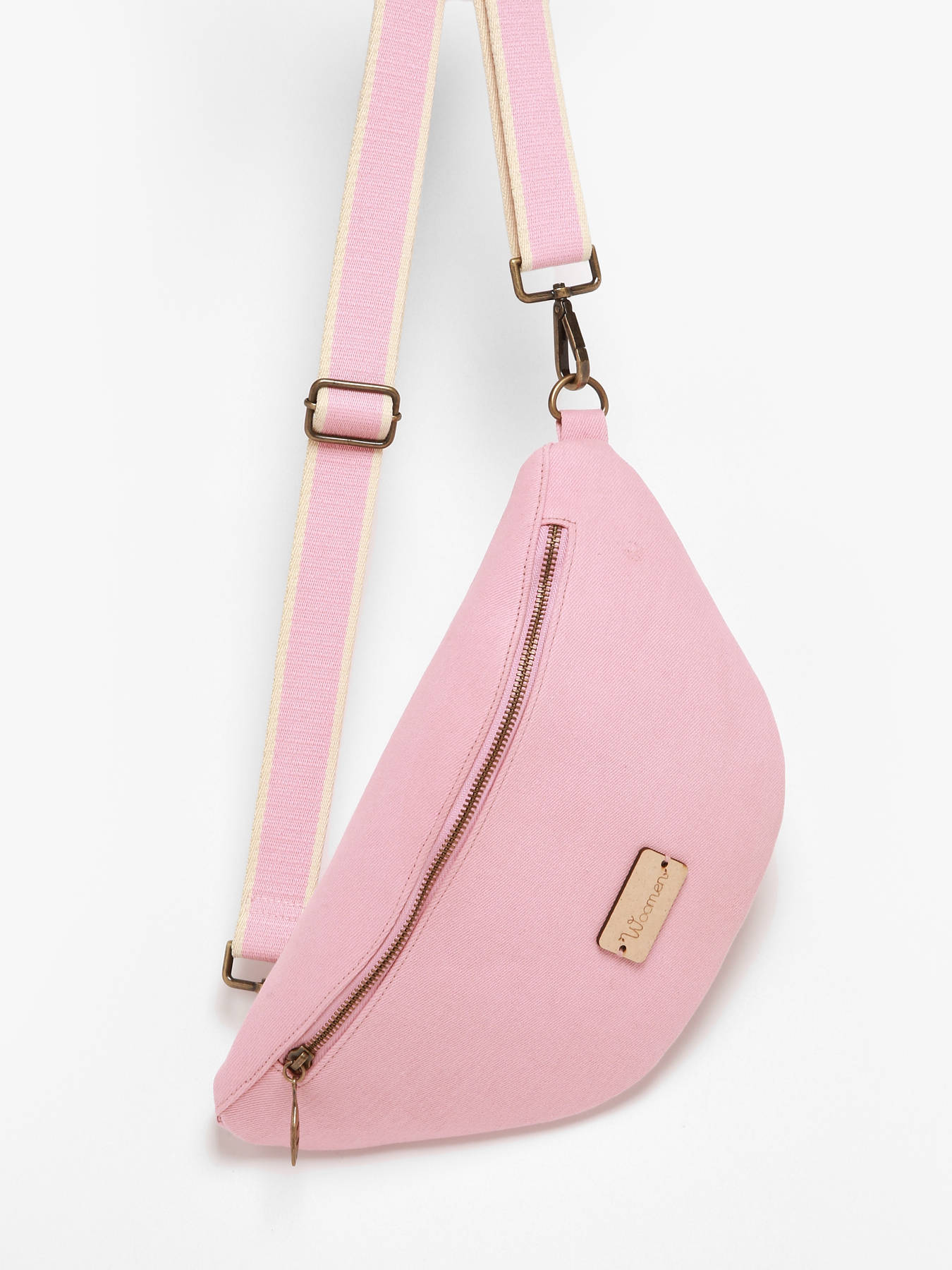 Deze ruime belt bag uit de Figuier collectie van Woomen is gemaakt van katoen, afgewerkt met een gestreepte canvas schouderriem. Deze is in lengte verstelbaar, en kan gekruist over de borst of in de taille gedragen worden. De charmante ritssluiting, in de vorm van een blaadje, is een knipoog naar het ecologische concept van het merk. Binnenin is een mediumgroot interieur met linnen voering voorzien. Kleinere spulletjes kunnen worden opgeborgen in het handige rits- en steekvakje. Praktisch én stijlvol! Het merk Woomen gebruikt geen materialen van dierlijke oorsprong, en is daarom vegan gecertifieerd door het label EVE Vegan. Ook probeert het merk z'n ecologische voetafdruk tot een minimum te herleiden, door het gebruik van ecologische en/of gerecycleerde materialen. Woomen kiest ook voor transport met een lage CO²-uitstoot.