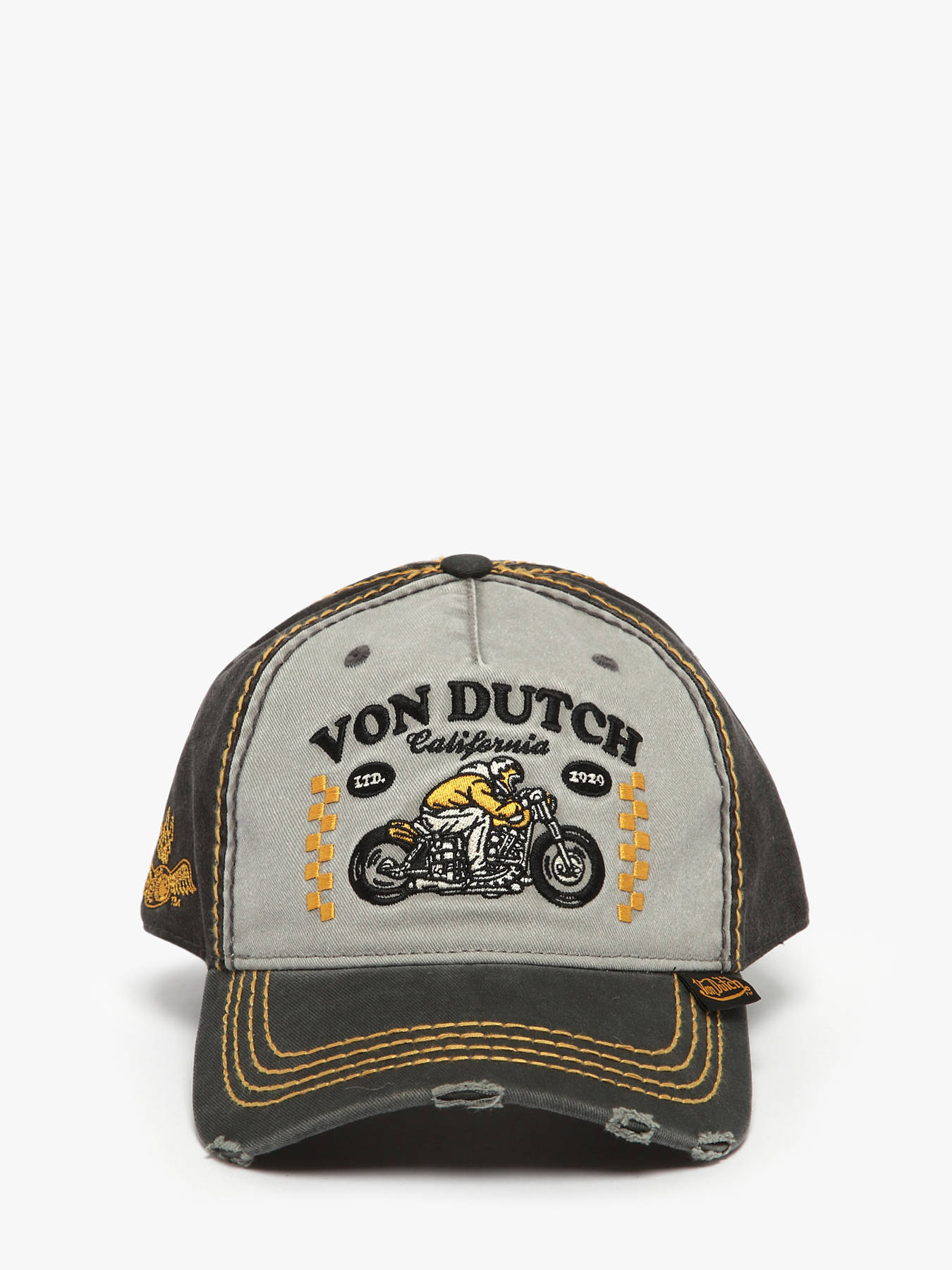 Authentiek en vol karakter, de Von Dutch pet met used effect charmeert met haar vintage stijl en nonchalante uitstraling. Gemaakt van zacht en duurzaam katoen, is ze afgewerkt met een verweerd effect dat haar een unieke charme en perfect gedragen look geeft. De gebogen klep en de verstelbare sluiting aan de achterkant zorgen voor optimaal comfort en een gepersonaliseerde pasvorm. Licht van gewicht, slechts 0,1 kg, is ze gemakkelijk dagelijks te dragen en combineert ze moeiteloos met elke outfit — van klassieke jeans tot moderne streetwear. Trouw aan de vrije en rebelse geest van Von Dutch, belichaamt deze pet de houding van wie zijn stijl zonder compromis durft te tonen en kiest voor een authentieke, tijdloze elegantie.