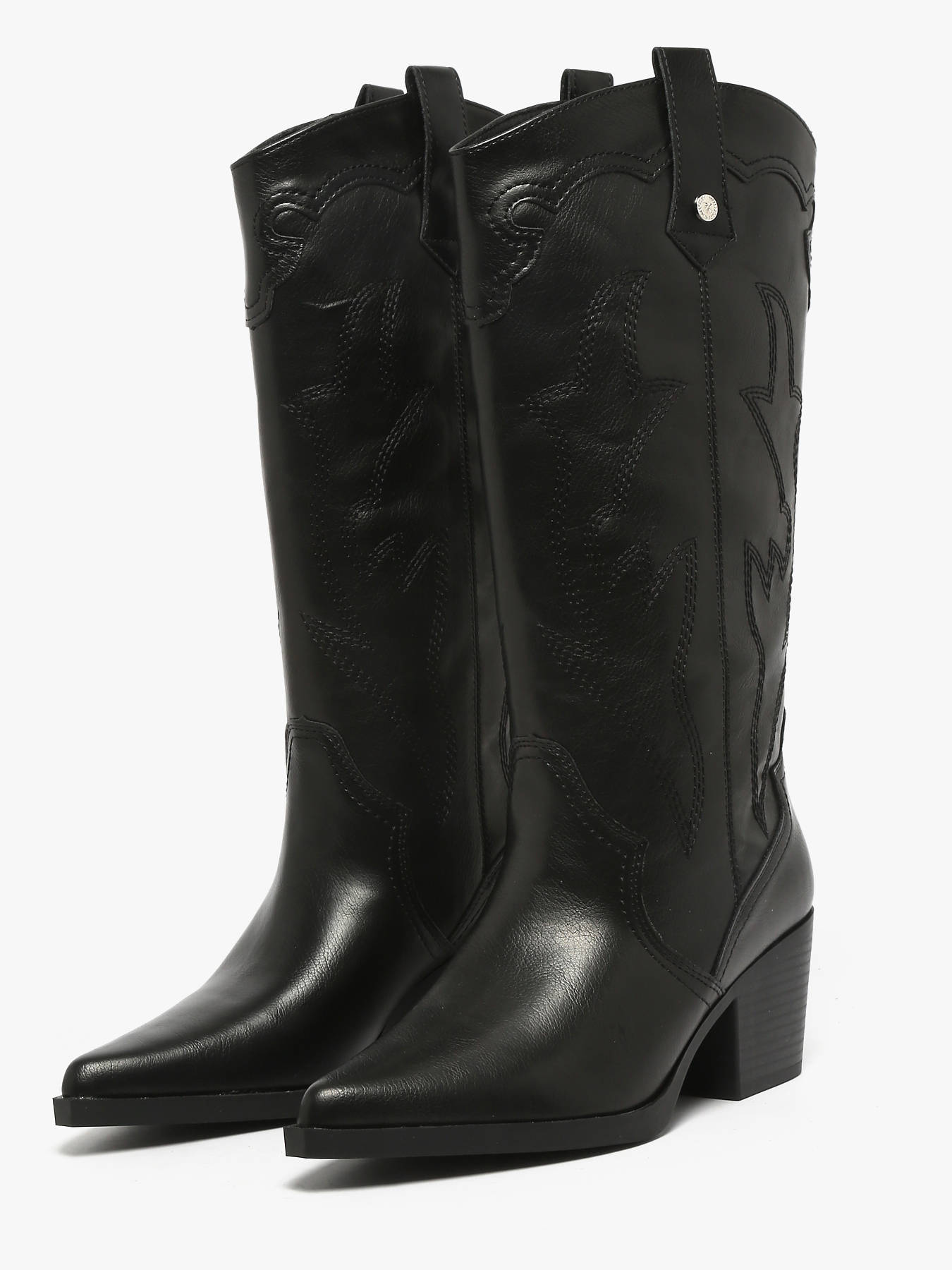Ontdek de XTI zwarte santiag met gladde afwerking, een gedurfd model dat de westernstijl modern herinterpreteert. Gemaakt van imitatiel leer, valt hij op door het strakke ontwerp en de 7 cm hak, die zowel elegantie als dagelijks comfort bieden. De lijnen geïnspireerd op het Wilde Westen geven een uitgesproken vleugje aan al je outfits, van casual jeans tot vloeiende jurken. Voorzien van een uitneembare binnenzool en een antislipzool, biedt hij stabiliteit en welzijn bij elke stap. Een elegante, trendy en makkelijk te dragen santiag. XTI staat voor eigentijdse mode tegen betaalbare prijzen.
