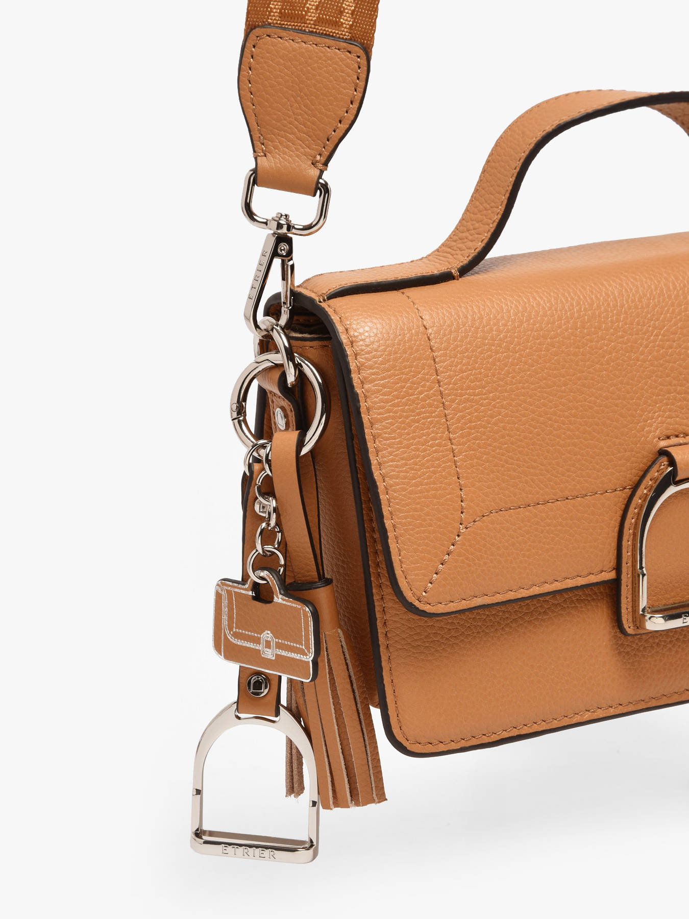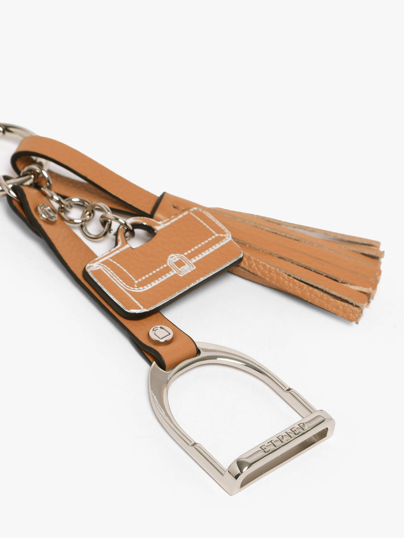 De ETRIER tashengsel uit de Altesse-lijn is een elegant accessoire dat de iconische Altesse-tas in miniatuurvorm weerspiegelt. Verfraaid met een zachte leren kwast geeft het een verfijnde toets aan uw sleutels of tassen.